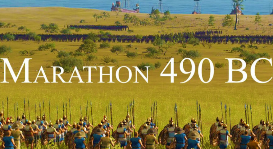 公元前490年,波斯帝国皇帝大流士率领入侵希腊,逼近雅典。雅典军队1万人和前来支援的1千普加提亚士兵组成联军迎战波斯的三万军队。双方在雅典城东北方向42公里外的马拉松(Marathon)平原展开激战。