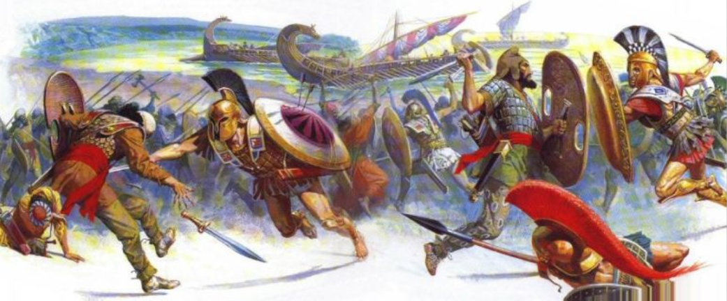希腊战士为保卫祖国自由的热情所鼓舞,奋起抗击波斯军队,最终以少胜多,击败了波斯军队,迫使波斯军队逃回亚洲。