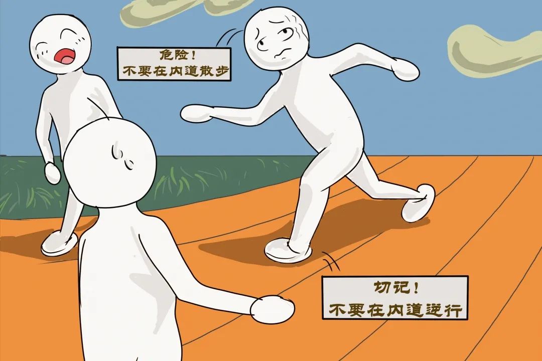 此外,在使用跑道时,应按照竞赛顺序逆时针地跑步,避免“逆行”。