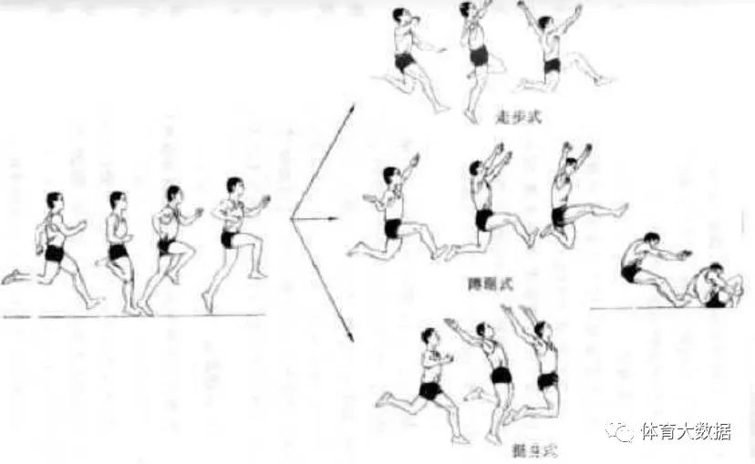 纠正方法:教师在学生练习时喊口令:“1-2-3”来帮助体育考生掌握跳跃节奏,教师根据体育考生的跳跃能力在地面上做记号,让体育考生逐步掌握三跳的合理距离分配,使体育考生明确三跳过程中空中轨迹“步步高”的道理。另外注意第二跳落地的支撑脚是由脚跟迅速滚动到脚前掌的过程。