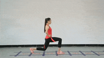 要求:后部膝关节不接触地面,重复时无停顿,双手叉腰或摆动协助双腿用力。