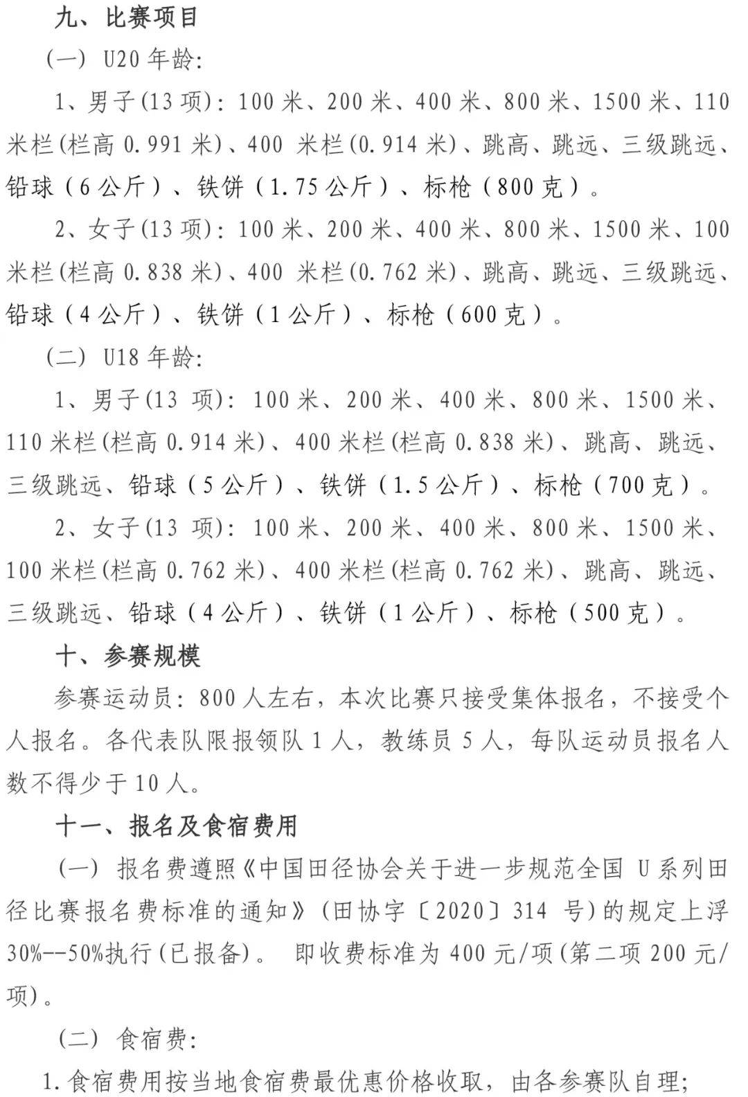 附件1:中国田径协会关于进一步规范全国 U 系列田径比赛报名费标准的通知 。
